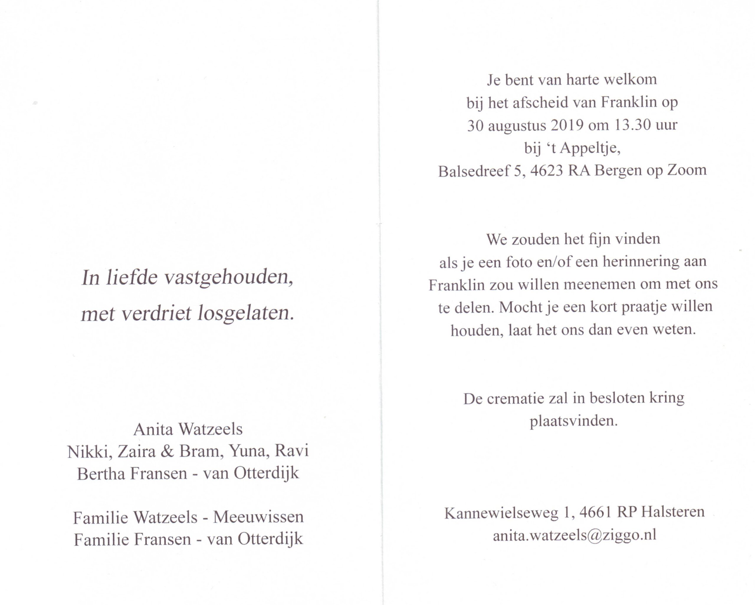 Franklin Fransen 1967-2019