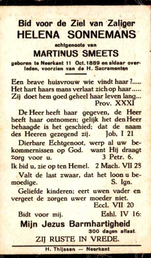 Helena Smeets-Sonnemans 1889-1928 Helena Smeets-Sonnemans 1889-1928 Drukfout op prentje de geboorte datum is volgens de geboorteakte 10 oktober 1889