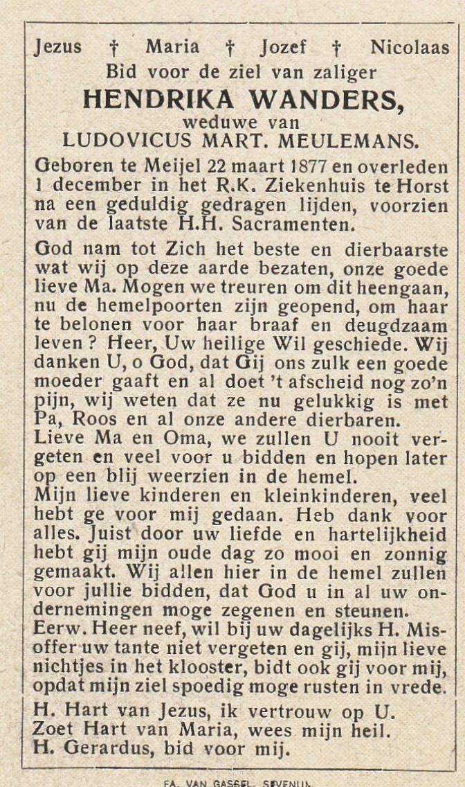 Hendrika Meulemans-Wanders 1877-1957