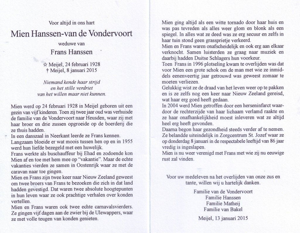 Mien Hanssen-van de Vondervoort 1928-2015